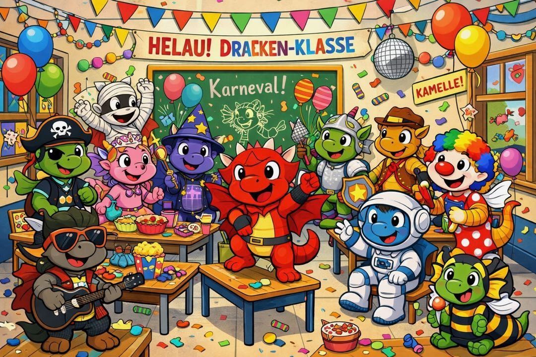 So bunt wie der Kolibri war unser heutiges Karnevalsfest: Ob in den Klassen oder auf dem Schulhof; die Gesichter strahlten, Musik tönte aus den Boxen, es wurde gebastelt, getanzt, gelacht! Mit gemeinsamen Frühstück und bunten Kostümen wurde Karneval gefeiert.